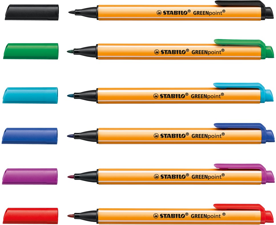 CO2 NEUTRAL - 100 % GUTES GEWISSEN. CO2 neutraler Faserschreiber (Emissionen vollständig kompensiert) in 6 beliebten Farben. Robuste, breite Spitze, handliche Stiftlänge und Clip für mehr Mobilität. Auch im attraktiven 4er-Set mit Einleger erhältlich.