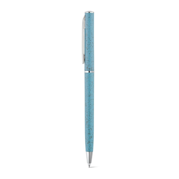 Kugelschreiber aus Weizenstrohfaser und ABS mit schwarzschreibender Mine. Mit Drehmechanismus und Clip aus Metall. ø8 x 126 mm