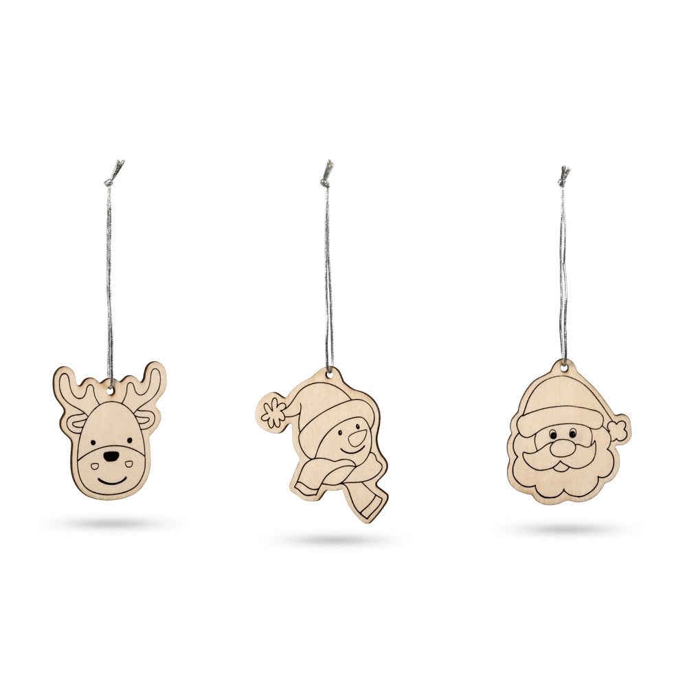 Malset aus Holz. Inklusive 3 Weihnachtsdekorationen mit Ausmalbildern, Bändern zum Aufhängen und... mehr