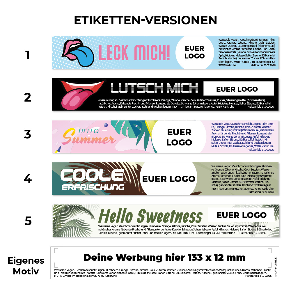 Wassereis mit individuellem Etikett