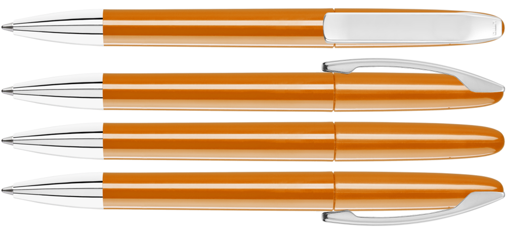Drehkugelschreiber mit gedeckt glänzendem Gehäuse, Metallclip und Spitze glanzverchromt. mehr