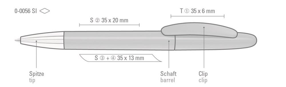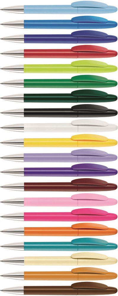 Drehkugelschreiber mit gedeckt glänzendem Gehäuse und Spitze glanzverchromt.