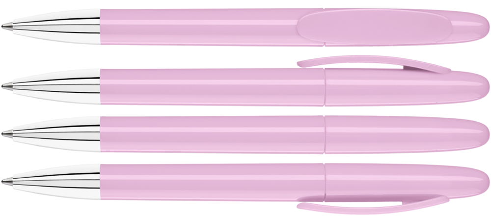 Drehkugelschreiber mit gedeckt glänzendem Gehäuse und Spitze glanzverchromt.