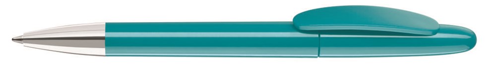 Drehkugelschreiber mit gedeckt glänzendem Gehäuse und Spitze glanzverchromt.