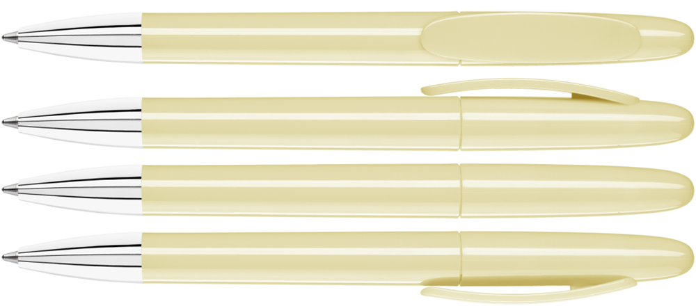 Drehkugelschreiber mit gedeckt glänzendem Gehäuse und Spitze glanzverchromt.
