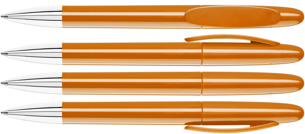 Drehkugelschreiber mit gedeckt glänzendem Gehäuse und Spitze glanzverchromt.