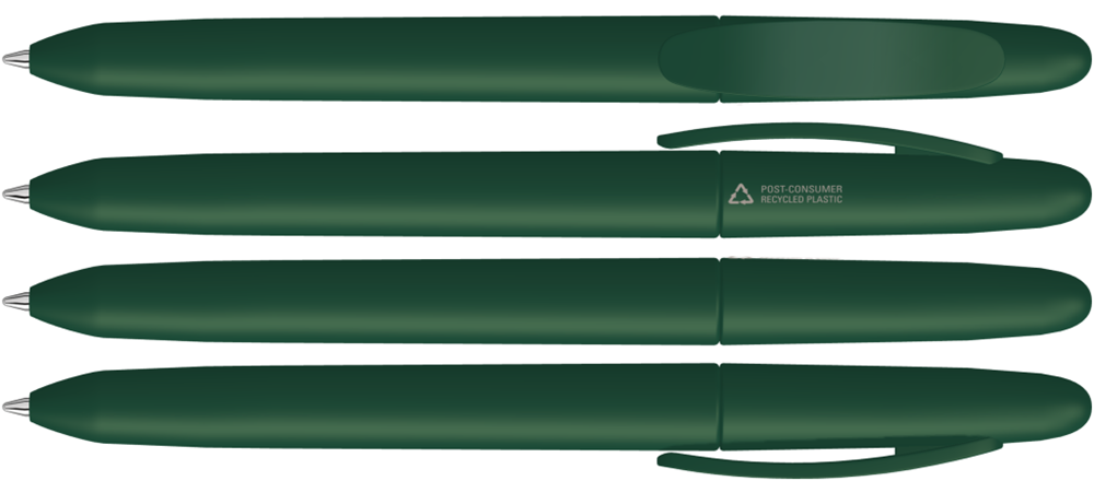Drehkugelschreiber mit gedeckt mattem Gehäuse aus 100% recyceltem Post-Consumer-Kunststoff.