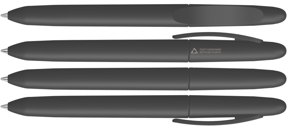 Drehkugelschreiber mit gedeckt mattem Gehäuse aus 100% recyceltem Post-Consumer-Kunststoff.
