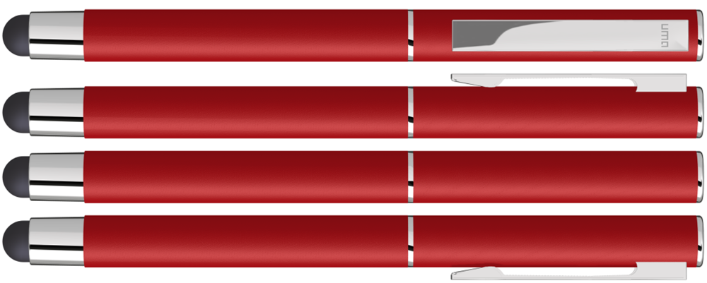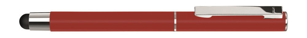 Metall-Rollerball mit mattem Gehäuse. Metallclip und Zierring silber glänzend, Griffzone schwarz. Gummiertes Schaftende für die Touchscreensteuerung.