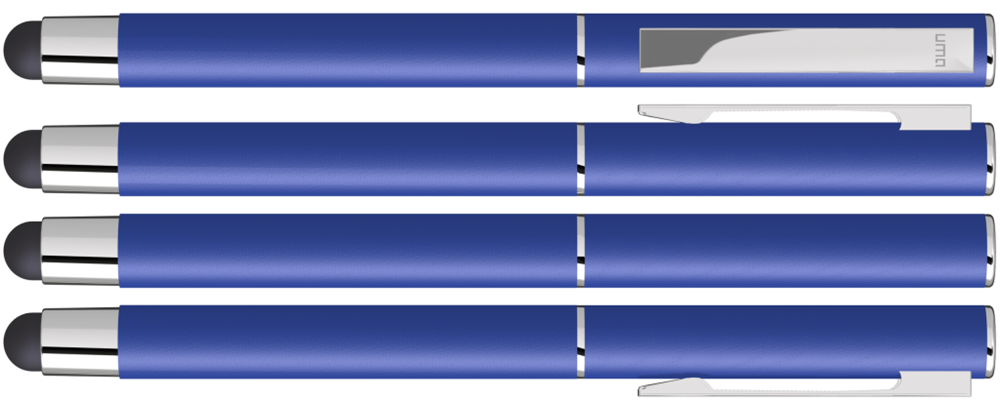 Metall-Rollerball mit mattem Gehäuse. Metallclip und Zierring silber glänzend, Griffzone schwarz. Gummiertes Schaftende für die Touchscreensteuerung.
