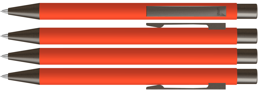 Metall-Druckbleistift (0,7mm) mit Softtouch-Gehäuse. Metallclip, Metallspitze und Drücker GUN metallic. Radiergummi im Drücker.