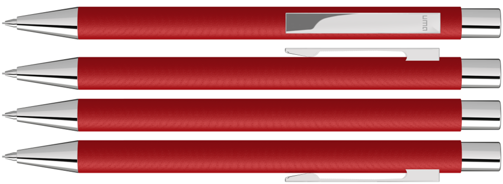 Metall-Druckbleistift (0,7mm) mit mattem Gehäuse. Metallclip, Metallspitze und Drücker silber glänzend. Radiergummi im Drücker.