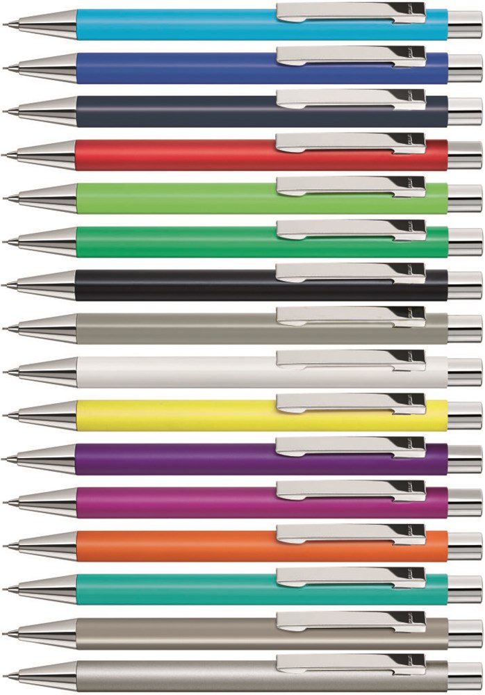 Metall-Druckbleistift (0,7mm) mit mattem Gehäuse. Metallclip, Metallspitze und Drücker silber... mehr