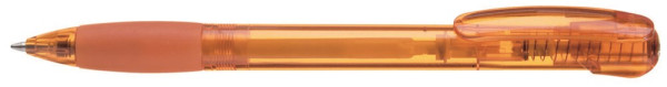 Druckkugelschreiber mit transparent glänzendem Gehäuse, Gummigriffzone und Clipdrücker. Stopfen... mehr