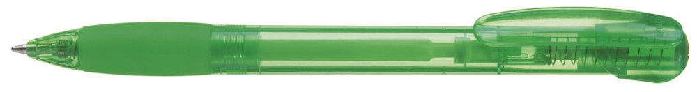 Druckkugelschreiber mit transparent glänzendem Gehäuse, Gummigriffzone und Clipdrücker. Stopfen... mehr