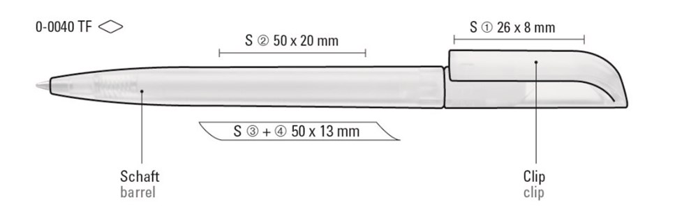 Drehkugelschreiber mit transparent gefrostetem Gehäuse.