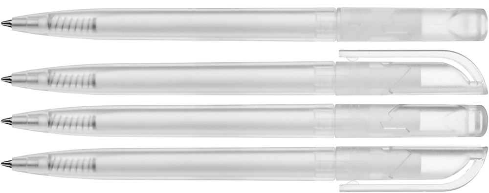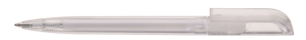 Drehkugelschreiber mit transparent gefrostetem Gehäuse.
