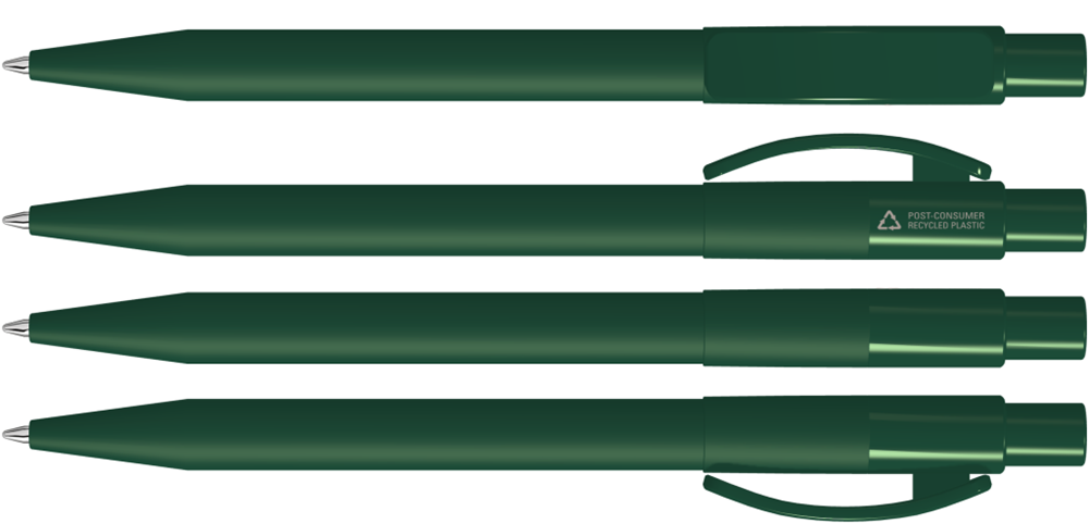Druckkugelschreiber mit gedeckt mattem Kunststoffgehäuse aus 100% recyceltem... mehr