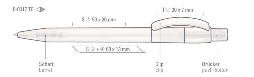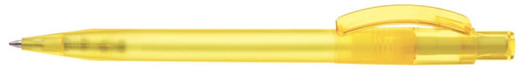 Druckkugelschreiber mit gefrostetem Gehäuse, glänzend transparentem Bogenclip und Drücker. mehr