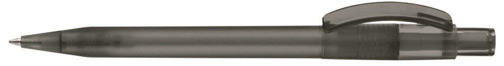 Druckkugelschreiber mit gefrostetem Gehäuse, glänzend transparentem Bogenclip und Drücker.