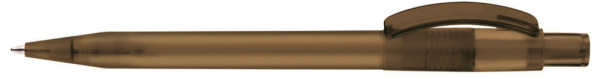 Druckkugelschreiber mit gefrostetem Gehäuse, glänzend transparentem Bogenclip und Drücker. mehr