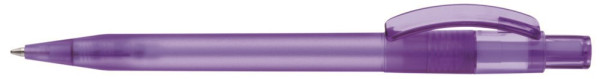 Druckkugelschreiber mit gefrostetem Gehäuse, glänzend transparentem Bogenclip und Drücker. mehr