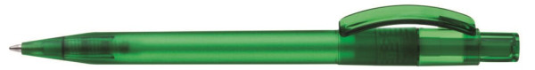 Druckkugelschreiber mit gefrostetem Gehäuse, glänzend transparentem Bogenclip und Drücker. mehr