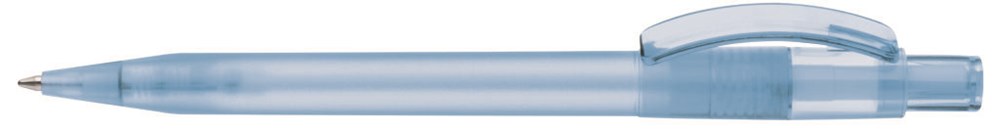 Druckkugelschreiber mit gefrostetem Gehäuse, glänzend transparentem Bogenclip und Drücker. mehr