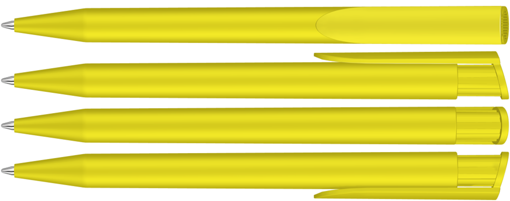 Druckkugelschreiber mit gedeckt mattem Gehäuse und Clipdrücker.