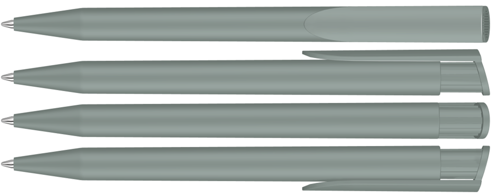 Druckkugelschreiber mit gedeckt mattem Gehäuse und Clipdrücker.