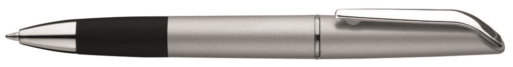 Drehkugelschreiber mit Gehäuse im Metallicfarben, Gummigriffzone in schwarz. Metallclip, Zierring und Metallspitze glanzverchromt.