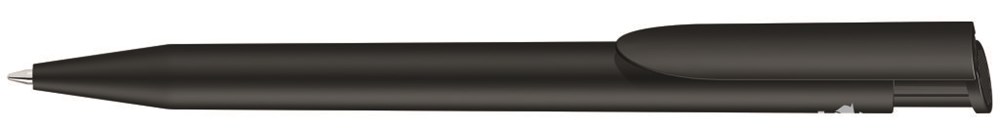 Druckkugelschreiber mit gedeckt mattem Gehäuse und Clipdrücker aus recyceltem Kunststoff.