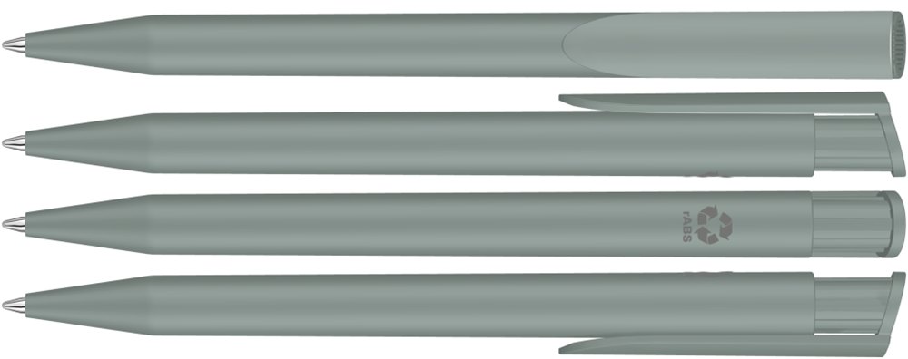 Druckkugelschreiber mit gedeckt mattem Gehäuse und Clipdrücker aus recyceltem Kunststoff. mehr