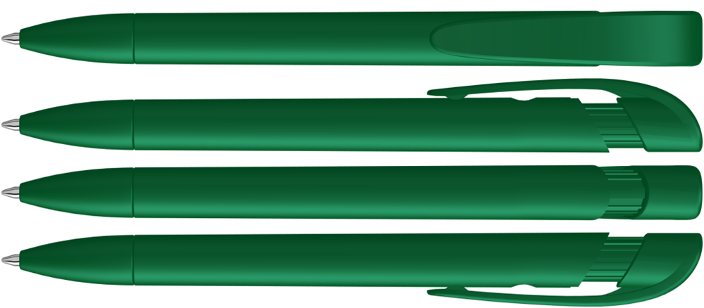 Druckkugelschreiber mit gedeckt mattem Gehäuse, breitem Bogenclipdrücker und Spitze. mehr