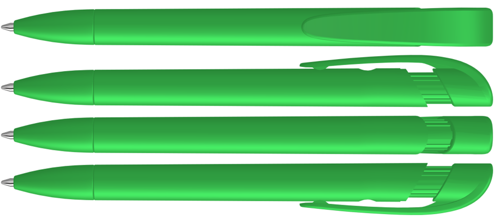 Druckkugelschreiber mit gedeckt mattem Gehäuse, breitem Bogenclipdrücker und Spitze. mehr