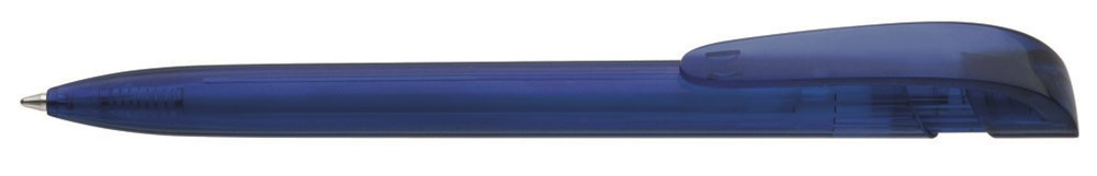 Druckkugelschreiber mit transparent glänzendem Gehäuse und breitem Bogenclipdrücker.