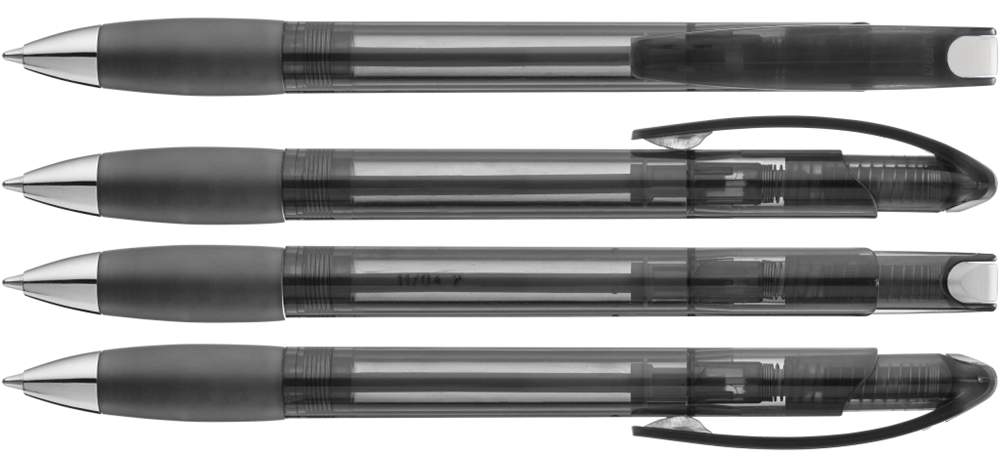 Druckkugelschreiber mit transparent glänzendem Gehäuse, Gummigriffzone und Clipdrücker.... mehr