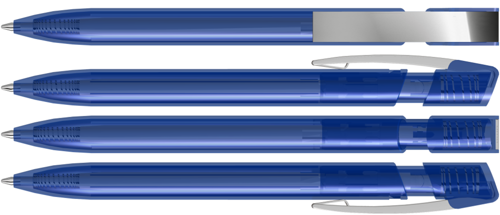 Druckkugelschreiber mit transparent glänzendem Gehäuse und flexiblem Metallclip glanzverchromt. mehr