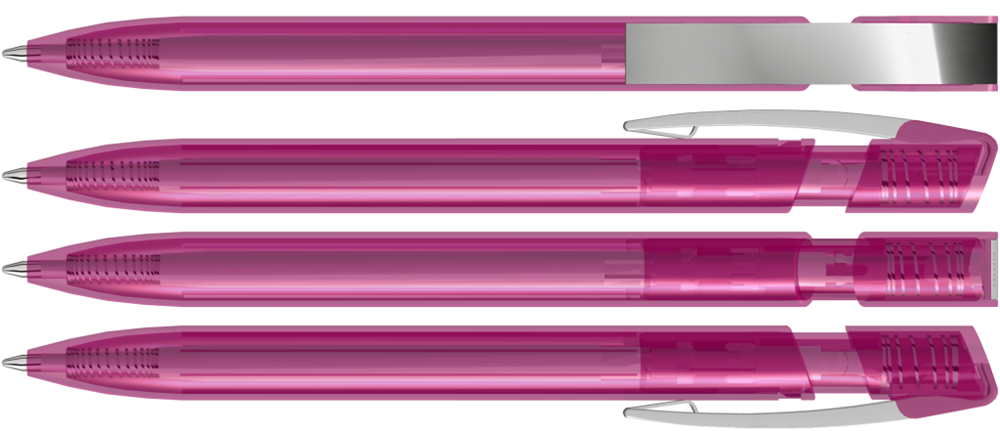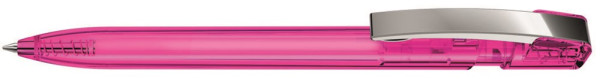 Druckkugelschreiber mit transparent glänzendem Gehäuse und flexiblem Metallclip glanzverchromt. mehr