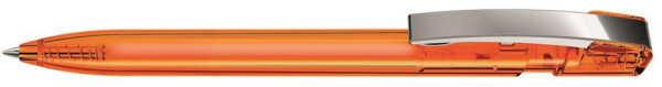 Druckkugelschreiber mit transparent glänzendem Gehäuse und flexiblem Metallclip glanzverchromt.