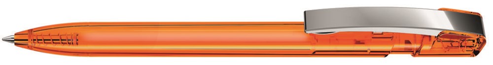 Druckkugelschreiber mit transparent glänzendem Gehäuse und flexiblem Metallclip glanzverchromt. mehr