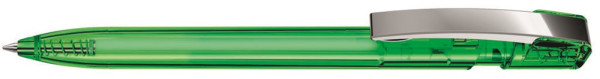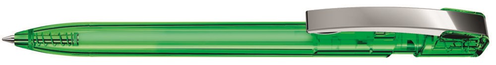 Druckkugelschreiber mit transparent glänzendem Gehäuse und flexiblem Metallclip glanzverchromt. mehr