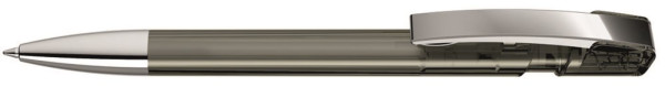 Druckkugelschreiber mit transparent glänzendem Gehäuse, flexiblem Metallclip und schwerer... mehr