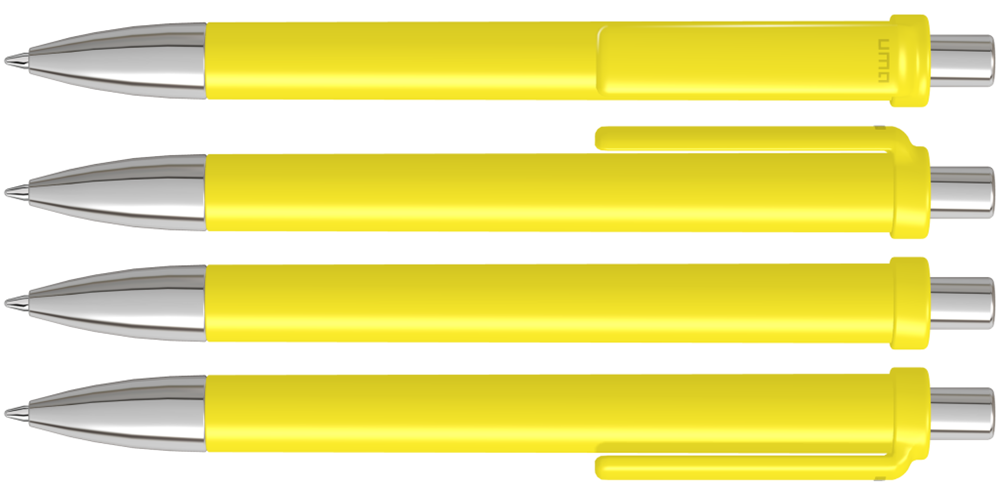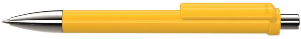 Druckkugelschreiber mit gedeckt glänzendem Schaft und Clip, Metallspitze und Metalldrücker glanzverchromt.