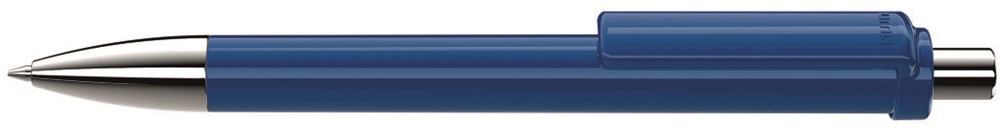 Druckkugelschreiber mit gedeckt glänzendem Schaft und Clip, Metallspitze und Metalldrücker glanzverchromt.