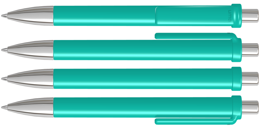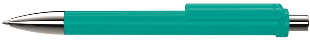 Druckkugelschreiber mit gedeckt glänzendem Schaft und Clip, Metallspitze und Metalldrücker glanzverchromt.