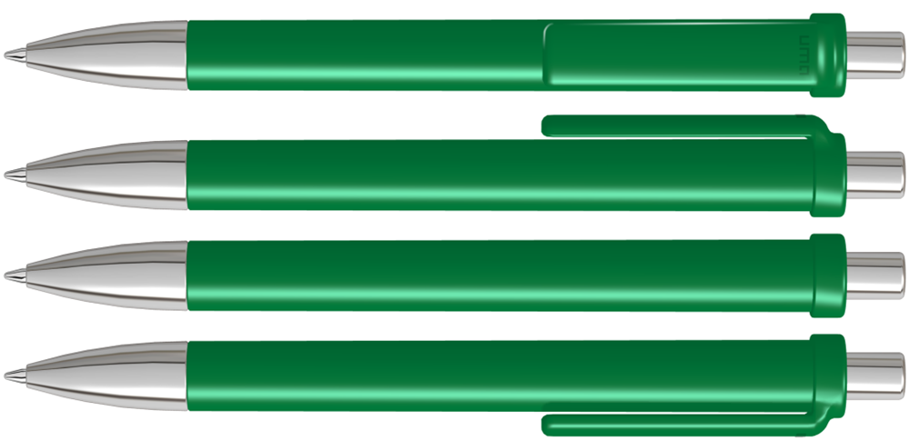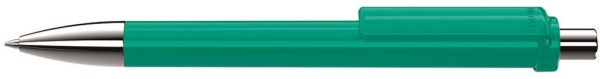 Druckkugelschreiber mit gedeckt glänzendem Schaft und Clip, Metallspitze und Metalldrücker glanzverchromt.