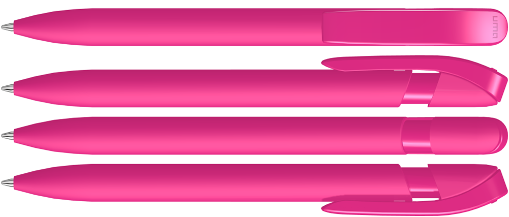 Druckkugelschreiber mit Softtouch-Gehäuse und Manschette, Clip und Cliphals gedeckt glänzend. mehr