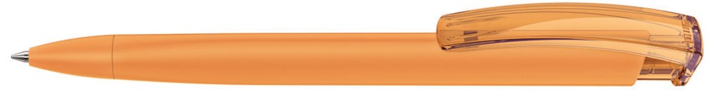 Druckkugelschreiber mit gummiertem Dreikantgehäuse und transparent glänzendem Clip. mehr