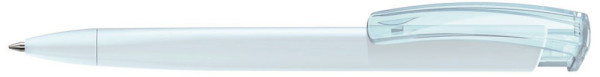 Druckkugelschreiber mit gummiertem Dreikantgehäuse und transparent glänzendem Clip. mehr